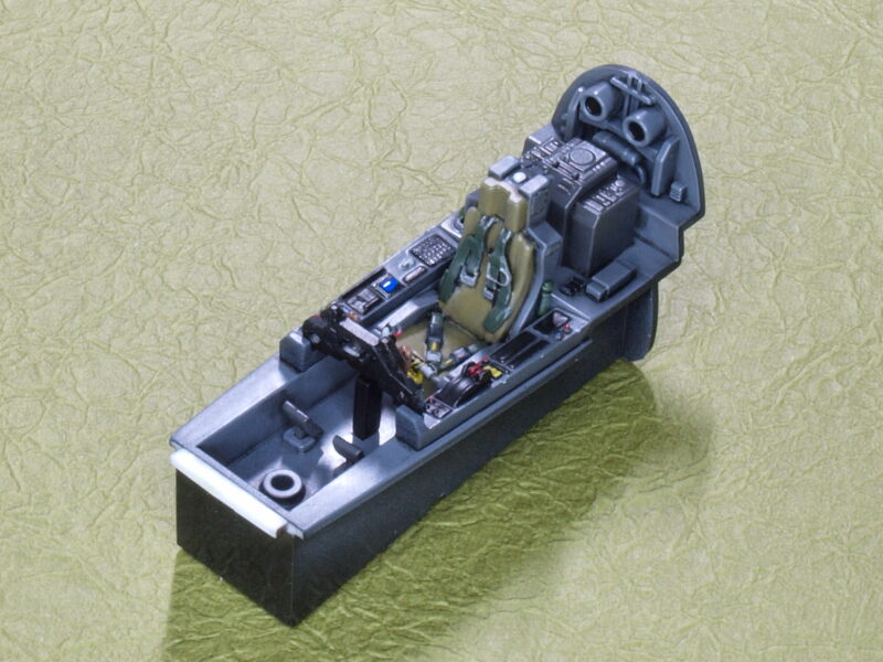 仕上げにディスプレイと思われる部分に光沢のクリアを筆でのせて、コクピットの作業が完了しました。